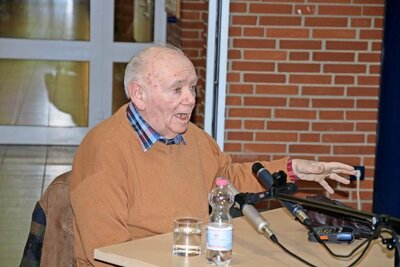 Januar 2019 - Der 85-jährige Holocaust-Überlebende Jurek Szarf sprach in der Arnesbokenschule in Ahrensbök vor Schülern des 9. und 10. Jahrgangs. Er berichtete von Hunger, von Läusen und davon, dass er überzeugt davon war, kein Mensch zu sein.